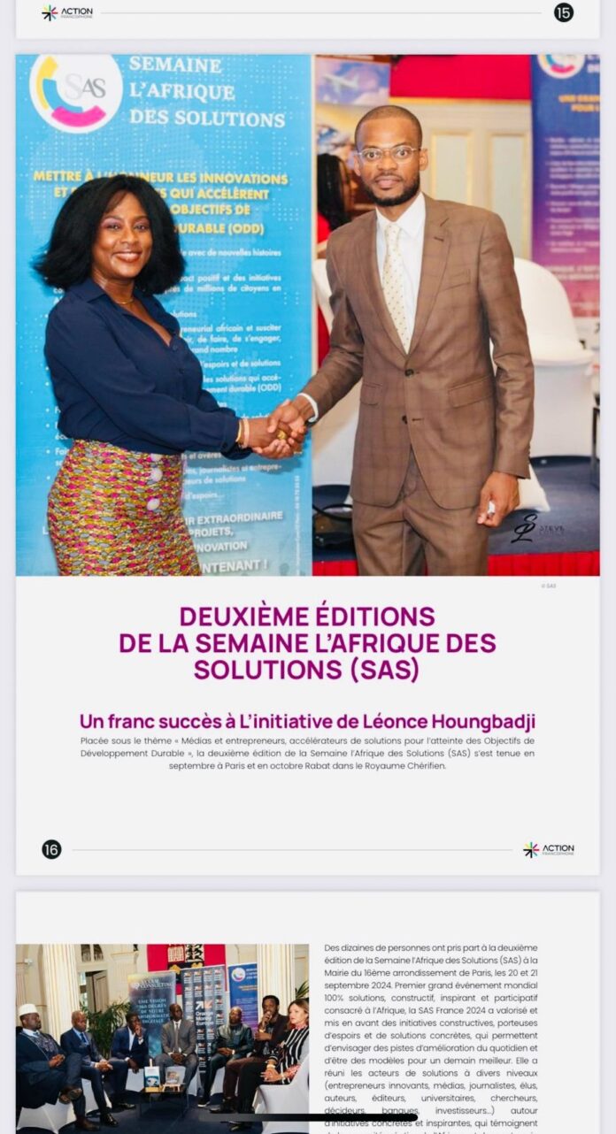 La deuxième édition de la Semaine l’Afrique des Solutions (SAS), qui s’est tenue du 20 au 21 septembre 2024 à la Mairie du 16ᵉ arrondissement de Paris, a confirmé son statut d’événement incontournable pour la valorisation des initiatives innovantes issues du continent africain. Sous l’impulsion de Léonce Hamza Houngbadji, journaliste béninois et fondateur du média Notre Voix, cette rencontre a rassemblé plus de 4 000 participants en présentiel et touché plus de 4 millions de personnes en ligne.