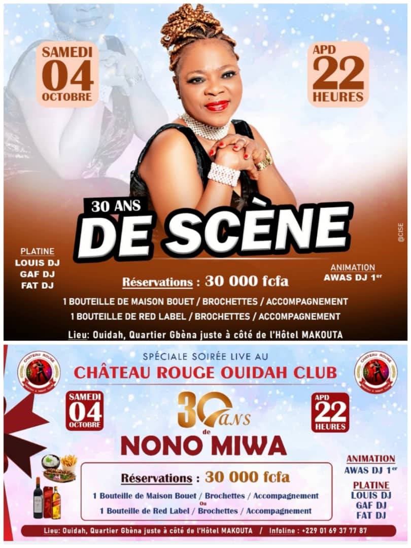 Et déjà avant l’étape de l’espace CCRI John Smith de Ouidah, une première carte spectaculaire est déjà jouée l’espace Mayton à Zogbadjè où l’artiste et son équipe ont communiqué de la joie au public essentiellement estudiantin et par endroit constitué de parents proches de l’artiste. Lorsque c’est le tour de l’espace CCRI de Ouidah, dans une salle comble, l’artiste Nono Miwa avec l’orchestre piloté de main de maître par le bassiste Samouraï, a rallumeé la flamme de la bonne ambiance en exécutant en live les titres comme »Mègnan », »Naé », »Zankpodo », »Chewréré », »Ayebourou », Yiri yiri bo » pour ne citer que ces morceaux. Un palpitant moment qui a permis au public de Ouidah de redécouvrir le talent incommensurable de l’international Nono Miwa qui a longtemps défendu les couleurs artistiques de sa terre natale sous d’autres cieux un peu partout à travers le monde. Cette soirée de prestation s’est soldée par une autre prestation semi-live au club Château rouge toujours dans la même nuit à Ouidah. Preuve que Nono Miwa reste égale à elle-même en termes d’énergie dans l’exercice de son art. D’autres dates sont en cours de négociation dans d’autres centres pour poursuivre cette mini-tournée dont l’objectif principal est de mettre de la lumière sur les trente ans de scène de l’artiste chanteuse compositrice et interprète Nono Miwa.