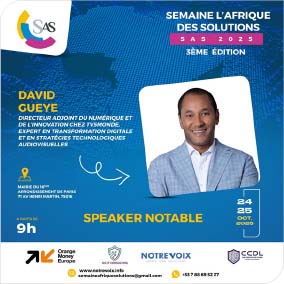 Les 24 et 25 octobre 2025, la Mairie du 16ᵉ arrondissement de Paris accueillera la troisième édition de la Semaine l’Afrique des Solutions (SAS), un événement international unique consacré aux initiatives qui transforment positivement l’Afrique et inspirent le monde. Parmi les personnalités attendues, David GUEYE, Directeur adjoint du Numérique et de l’Innovation chez TV5MONDE, apportera son expertise lors d’un atelier participatif intitulé : « Rêvons ensemble l’Afrique de demain : construire de nouveaux récits porteurs d’espoir et d’innovation ».