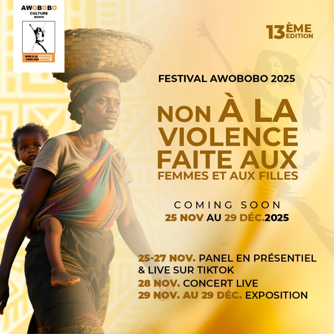 L’association Awobobo culture démarre ses activités, le Festival Awobobo, du 25 Novembre au  29 décembre 2025. Placée sous le thème « Non à la violence faite aux femmes et aux filles », cette édition va enregistrer la participation d’une panoplie d’acteurs et opérateurs cultures. Pour réussir, il est prévu un panel en présentiel et en live sur Tiktok, Facebook, YouTube.