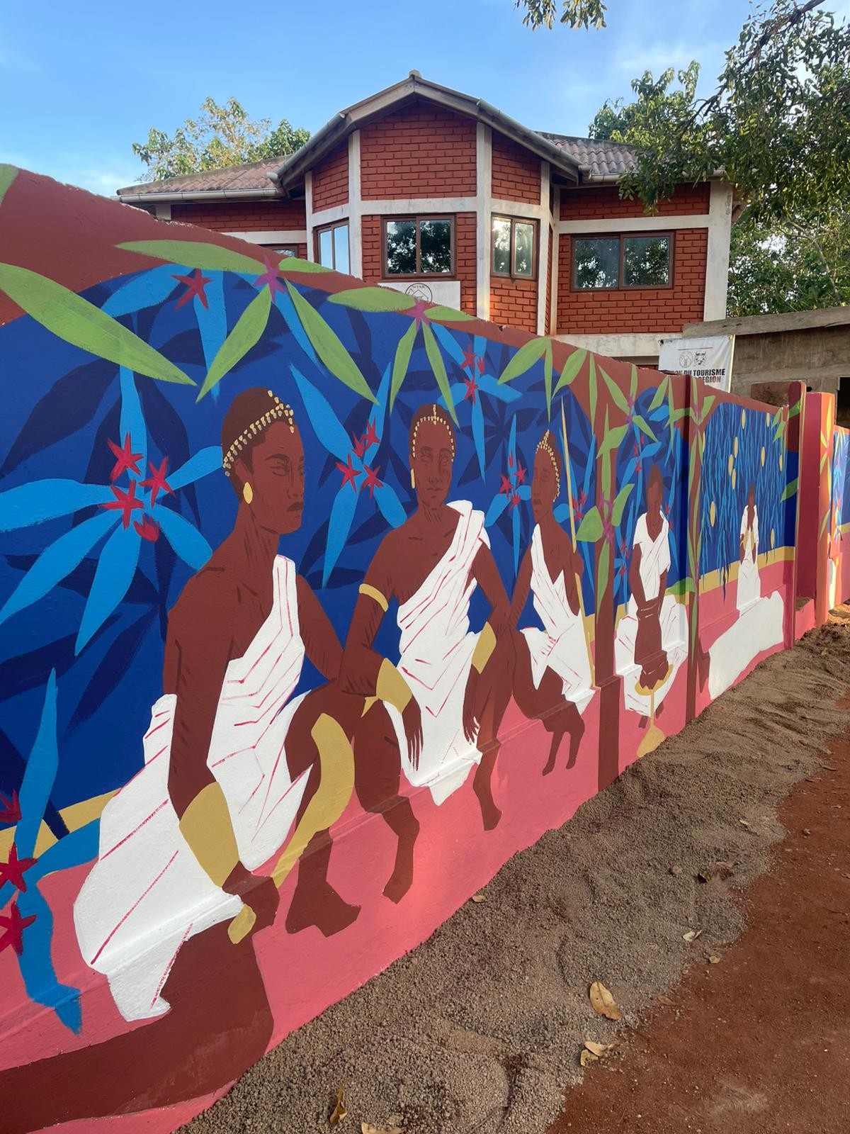 Après les murs du 99 Quai Président Wilson à Nantes en France, ce sont les murs de la Maison du Tourisme d’Abomey et Région qui reçoivent une fresque murale à l’honneur d’une figure féminine emblématique. Fruit du projet dénommé « Mémoire murale et dialogue d’histoire », porté par de jeunes artistes, dont des femmes, des artistes féminines du Bénin et de la France, les villes d’Abomey et de Nantes, marquées par la traite transatlantique, se relient à travers la création de fresques murales monumentales.