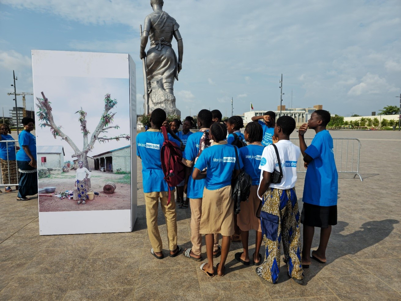 Le lendemain de la Journée mondiale de l’Enfance célébrée le 20 novembre, l’Unicef Bénin a invité les élèves du Collège d’enseignement général (Ceg) Océan de Cotonou, sur la place de l’Amazone, à une visite des œuvres exposées. L’objectif était de sensibiliser ces enfants aux difficultés rencontrées par d’autres jeunes de leur âge à travers le monde, ainsi qu’à la résilience qu’ils développent face à ces défis.