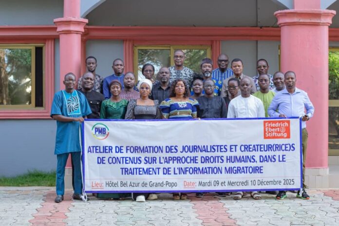 La Plateforme Multiacteurs de la Migration au Bénin (PMB) organise, avec le soutien de la Fondation Friedrich Ebert un atelier de formation sur l’approche des droits humains des migrants dans le traitement de l’information migratoire. Initiée au profit des journalistes et créateurs de contenus, la formation a lieu les 9 et 10 décembre 2025 à Grand-Popo.