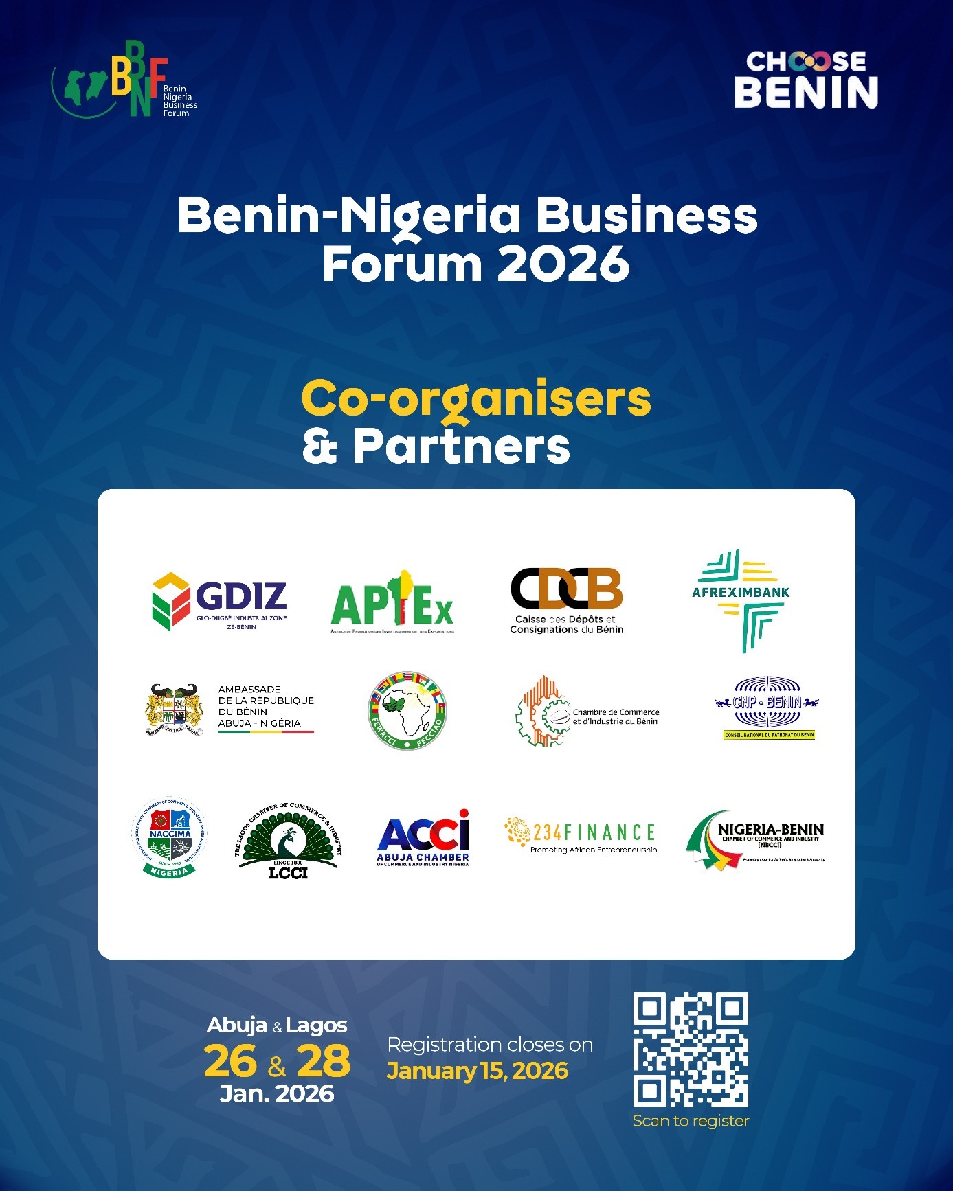 Plateforme stratégique de rencontres, d’échanges et d’opportunités d’affaires entre le Bénin et le Nigeria, le Benin–Nigeria Business Forum vise à renforcer les relations économiques et commerciales entre les deux pays ; promouvoir le Bénin comme destination d’investissement compétitive ; mettre en lumière les opportunités offertes par la Zone Industrielle de Glo-Djigbé (GDIZ), principal hub industriel du Bénin ; faciliter la création de partenariats stratégiques B2B entre opérateurs économiques béninois et nigérians. Le forum qui va se tenir à Abuja et aussi à Lagos réunira des décideurs institutionnels, des investisseurs, des chefs d’entreprises, des acteurs de la diaspora béninoise au Nigeria, des partenaires financiers et industriels. Il se veut être un espace de dialogue économique, de partenariats et d’investissements entre le Bénin et le Nigeria, aux fins de rapprocher les acteurs économiques des deux pays. Le Nigeria, le Benin–Nigeria Business Forum est destiné aux Hommes d’affaires et investisseurs nigérians, notamment les Industriels, les Promoteurs immobiliers et logistiques, les Acteurs de l’agro-industrie, du textile, de la transformation et de l’énergie, les Investisseurs à la recherche de nouveaux marchés en Afrique de l’Ouest, les Entrepreneurs béninois de la diaspora vivant au Nigeria, désireux d’investir au Bénin, de créer ou relocaliser des unités industrielles. La CDC Bénin joue un rôle stratégique dans le financement des projets structurants et de ses initiatives destinées à la diaspora béninoise. A travers, ce forum, le Bénin se positionne comme une destination d’investissement attractive, stable et compétitive, portée par une vision claire de transformation structurelle de son économie. Le forum permettra des rencontres B2B ciblées, une meilleure compréhension de l’écosystème économique béninois, l’identification d’opportunités concrètes et immédiatement exploitables. Les entrepreneurs, investisseurs et membres de la diaspora sont fortement encouragés à s’inscrire dès maintenant. Les inscriptions sont ouvertes et se clôturent le 15 janvier 2026 sur le site https://bnbf2026.com/inscription.