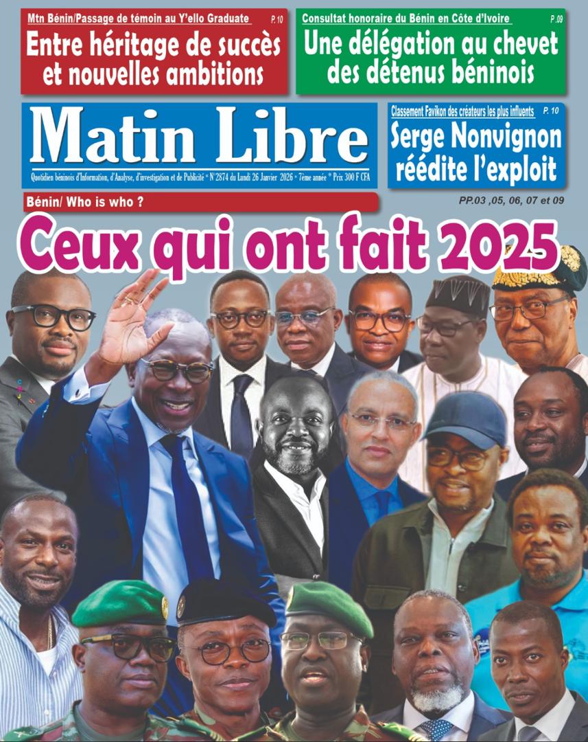Depuis environ un mois déjà, on parle de l’année 2025 au passé. Comme à son habitude, Matin Libre fait sa sélection des hommes et femmes qui ont marqué l’année. Cette fois, un fait, qui n’était pas prévu, a tenu en haleine le peuple béninois, les derniers jours de l’année 2025. Il s’agit de la tentative manquée de coup d’Etat intervenue, dimanche 7 décembre 2025. Matin Libre en a tenu compte dans son récit des événements et des acteurs.