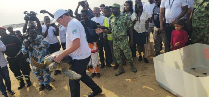 La protection de la biodiversité marine a fait un pas significatif à Cotonou avec le retour à la mer de centaines de tortues marines, résultat d’un suivi scientifique rigoureux débuté en mai 2025. L’initiative a pour but de sensibiliser les acteurs maritimes et les pêcheurs à la préservation des espèces protégées et de l’écosystème côtier béninois. Cette action découle d’un travail inédit réalisé par l’équipe du Port en collaboration avec plusieurs organismes étatiques dédiés à la protection de l’environnement. Grâce à ce travail de terrain, soutenu par des partenaires, 2 862 œufs ont été sécurisés avec un taux d’éclosion de 88,48 %. Lors de son discours, le représentant de l’Ong Amshart a souligné l’importance du travail nocturne des bénévoles : « Ce sont les éco-gardes qui se dévouent. Ils collectent les œufs et recherchent les tortues », a-t-il déclaré. Il a également insisté sur la nécessité de changer les comportements face aux tortues en ponte. « Ne les prenez pas. Laissez-les pondre. Observez-les. C’est un spectacle magnifique », a-t-il ajouté. L’enjeu va au-delà de la simple observation, car la survie de ces espèces est essentielle pour l’équilibre de l’océan. Le capitaine major de la Dgefc a été clair sur les conséquences d’une éventuelle extinction. Selon lui, si les tortues marines disparaissent, il n’y aura plus d’eau, plus de poissons, et donc plus de nourriture pour les pêcheurs et pour l’humanité. Cette vision est partagée par la préfecture maritime, dont le représentant a souligné que protéger ces bébés tortues aujourd’hui, c’est préserver la biodiversité, éduquer nos enfants et garantir un avenir meilleur pour nos côtes. L’Agence Béninoise pour l’environnement (Abe) a salué l’intégration de ces mesures dans les grands projets d’infrastructure, notant que le port développe de nombreux projets pour améliorer ses infrastructures tout en pensant à la sauvegarde de la biodiversité. Le Directeur Général du Port, Bart Van Eenoo, a conclu les discours en rappelant que l’autorité portuaire a un contrat tacite avec la mer, celui de la respecter et de la protéger. Il a défini les tortues comme de véritables indicateurs de la santé de nos côtes, avant de lancer un appel à la vigilance collective contre la pollution plastique et le braconnage. « J’appelle chaque acteur de la plateforme portuaire et chaque citoyen à devenir un gardien de notre océan », a-t-il insisté. La cérémonie s’est terminée par le lâcher symbolique des juvéniles, symbolisant l’engagement de la plateforme portuaire vers un modèle de coexistence durable entre l’activité humaine et la nature.