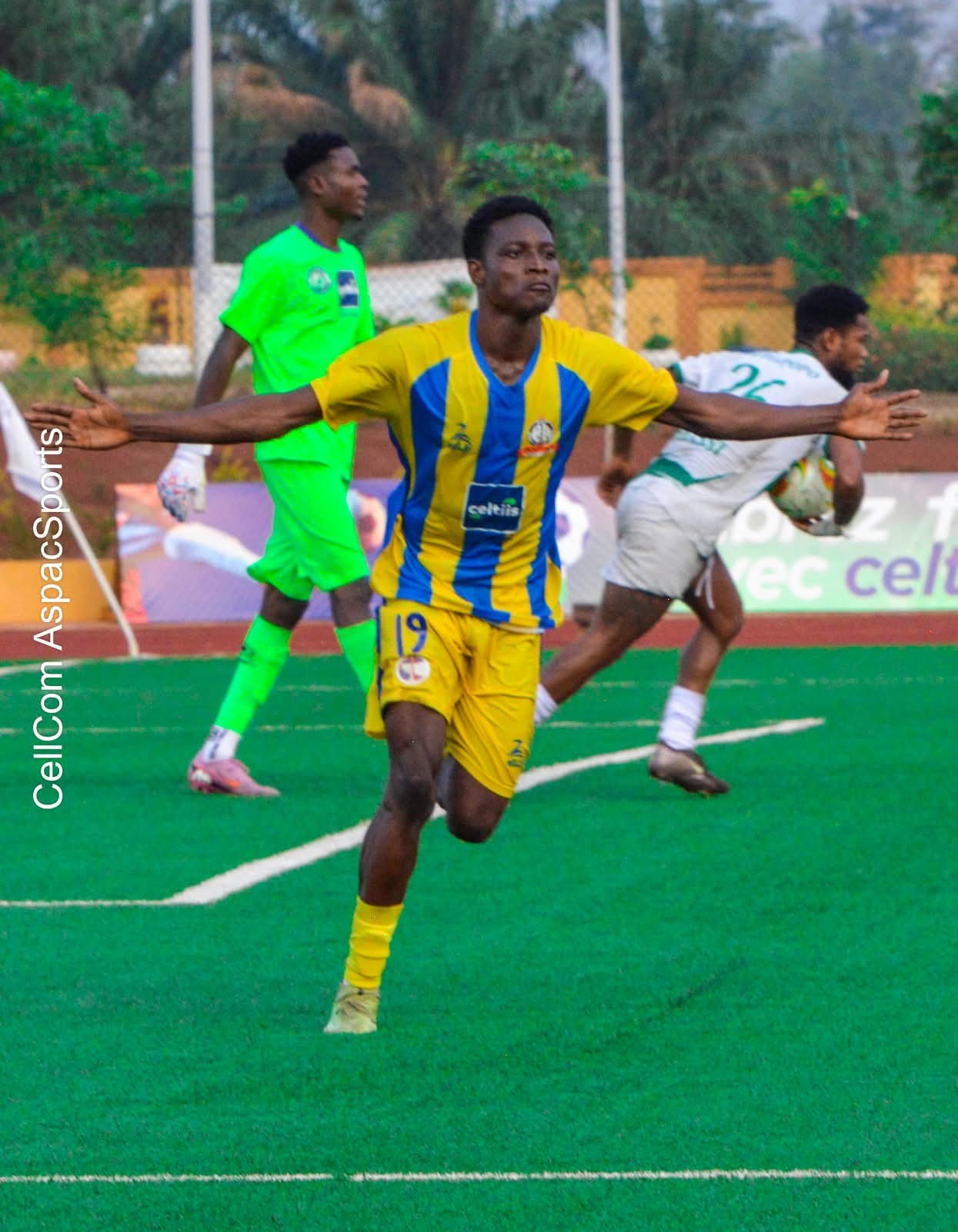 À Toffo, ASPAC FC s’est imposé (2-0) grâce à un doublé de Sahid N’gobi. Par ailleurs, le jeune artificier des portuaires, Sahid N’gobi trône désormais sur le toit des meilleurs buteurs de la Celtiis Ligue 1 avec ses 9 réalisations. À Ouidah, Coton FC s’est contenté du service minimum. Face à Dynamo FC d’Abomey, Coton FC a engrangé les trois points de la partie grâce au seul but de la rencontre inscrit à la 63è minute par son attaquant Cherif Dine Mama.