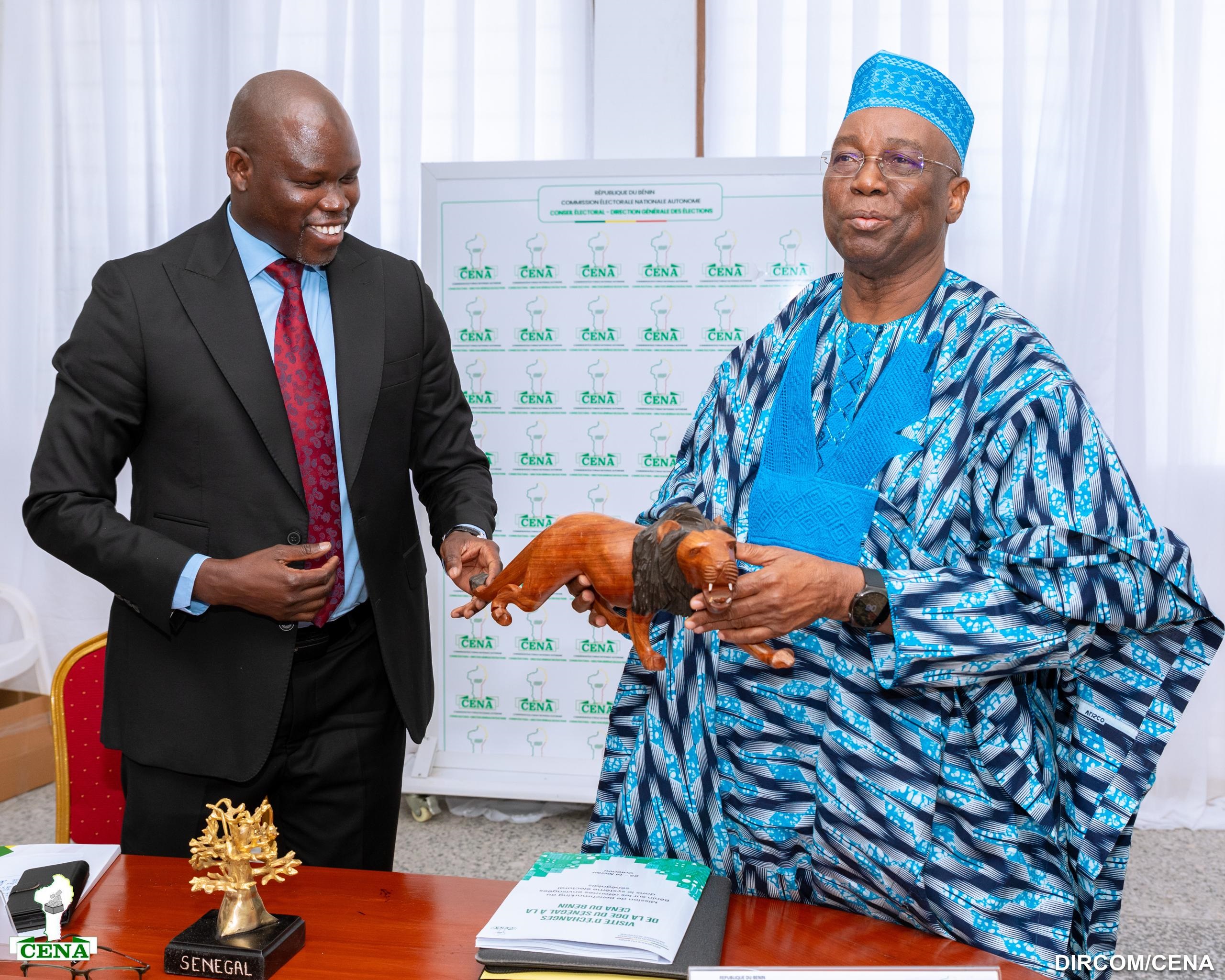 Conduite par Biram Séné, Directeur Général des élections du Sénégal, la délégation sénégalaise a été reçue au siège de la Céna par son président, Sacca Lafia. Les deux responsables ont d’abord eu un entretien en tête-à-tête, avant une séance de travail élargie aux membres du Conseil électoral et aux équipes techniques de la Direction générale des élections du Bénin.