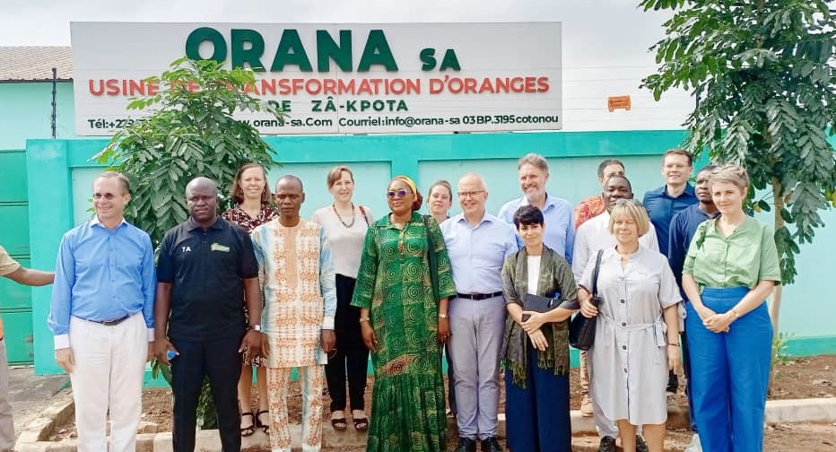 Implantée à Za-Kpota, l’usine de transformation d’oranges « Orana » sera bientôt fonctionnel et se positionne tel un géant africain de l’orange. Vendredi dernier, dans le cadre d’une tournée de deux jours, des ambassadeurs européens de l’UE ont eu le privilège d’inspecter l’usine Orana SA, projet agro-industriel financé par un montage associant coopération allemande, FNDA et partenaires bancaires, avec une mise en production annoncée pour mars 2026. Les premières opérations industrielles sont donc imminentes et toutes les dispositions sont prises pour tenir le pari, selon Togbédji Ahokpa, surnommé le magnat de l’orange. Face aux diplomates, il a retracé la genèse du projet. « Le Bénin produit un peu plus de 100 000 tonnes d’orange par an… plus de 7 000 paysans… comment se fait-il que cette matière ne procure pas de gros revenus aux producteurs ? » a-t-il martelé pour contextualiser la mise en place de l’usine qui se veut aujourd’hui une référence non seulement au Bénin mais dans toute l’Afrique. De la création d’une unité capable d’absorber la production locale et de structurer la filière aux équipements de dernière génération acquis, Orana s’inscrit dans le long terme. Présenté comme un montage financier à plusieurs étages
