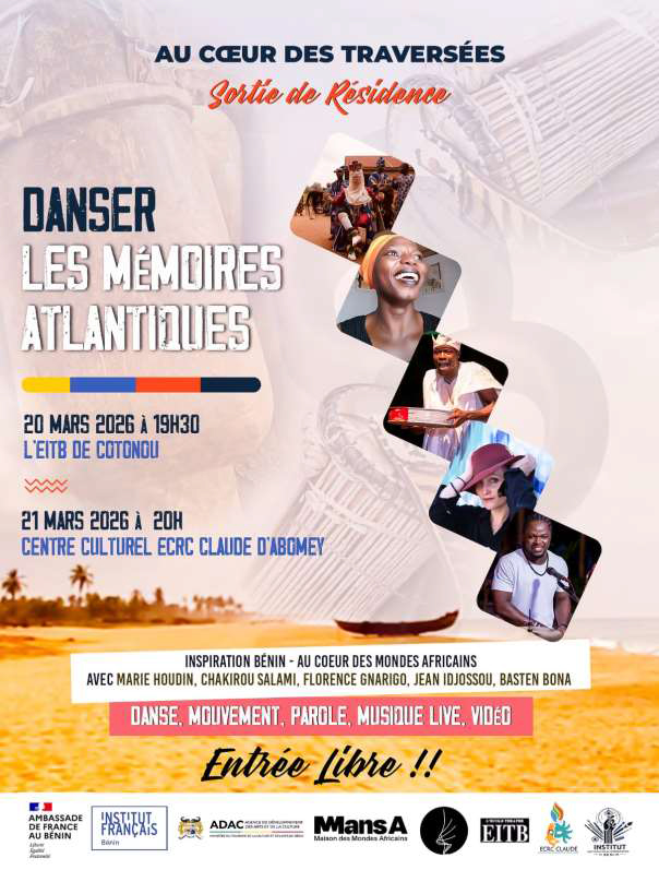 Le 20 Mars 2026 à 19h30, l’Ecole Internationale de Théâtre du Bénin (Eitb) accueille le spectacle de danse intitulé »Au rythme des traversées, danser les mémoires atlantiques ». Ensuite suivra l’étape du 21 Mars 2026 à 20h au Centre culturel ECRC Claude – Arrondissement de Hounli – Quartier Gbèkon Hounli – Abomey,