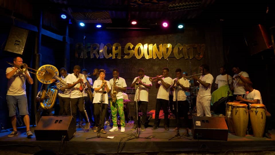 Jeanna Michard est saxophoniste installée à Clermont-Ferrand dans le centre de la France depuis quelques années. Sa rencontre avec la compagnie de musique l’Excentrale dont les membres, parmi tant d’autres, sont Aurélie Bruyère, la chargée de diffusion sur la compagnie et Félix Gibert, le tromboniste et joueur de tuba au sein de la compagnie. Ils se sont associés à des musiciens béninois, notamment, les fanfares Ayessi et Ifè Brass Band, pour donner jour à une production musicale mixte qui révèle les couleurs d’un brassage culturel captivant. L’Excentrale est adhérente de la Fédération des Acteurs de Musiques et Danses Traditionnelles et de Jazz(s)Ra. Existant depuis plus de 20 ans, cette compagnie travaille sur la musique traditionnelle, un collectif artistique qui œuvre au rayonnement de l’art musical traditionnel sous toutes ses formes. Alors le projet qui les amène à Cotonou est dénommé »So WéWé », ce qui traduit juste en langue Goungbé le mont blanc, il s’agit de la Fanfare jazz mêlant musiques traditionnelles de l’Auvergne et du Bénin avec l’improvisation comme terrain de jeu, comme terrain de labour, comme terrain d’entente. Ledit projet est piloté par une équipe bénino-vergnate de huit musicien-nes à savoir :Jeanne Michard saxophone ténor et soprano, Elvire Jouve batterie, Hélène Kermorgant clarinette, Zesahou, Ebenezer Akloe saxophone alto, Prosper Odjo trompette, Félix Gibert trombone, Clément Gibert saxophone alto et François Arbon saxophone basse.