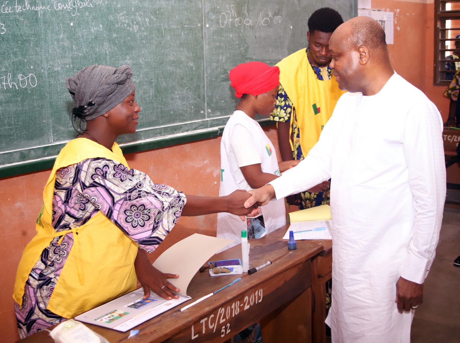 À 10 heures précises, le Président de la Cour constitutionnelle, le Professeur Cossi Dorothé Sossa, a fait son entrée dans la cour du Lycée Technique Coulibaly afin d’accomplir son devoir civique. Après les salutations protocolaires, il a suivi les étapes prévues pour le scrutin et a déposé son bulletin dans l’urne au Poste 3 du centre de vote, situé dans le 6ᵉ arrondissement de Cotonou.