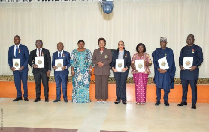 La Présidente de la Haute Cour de Justice, Pre Dandi Gnamou, Grand Officier de l’Ordre national, a présidé ce jeudi 23 avril 2026, la cérémonie de décoration de certains cadres du Ministère des Affaires étrangères, consacrant ainsi un acte solennel de reconnaissance républicaine.